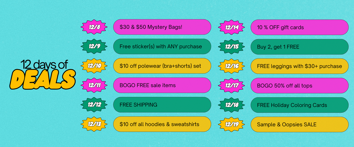 Every item we sell features illustrated designs by our founder & designer, Tiffany. As an obsessed pole dancing hobbyist with a panache for all things quirky, she felt there was a need for cute polewear that was missing in the market. Each print is made with love so you can show the world what you love.