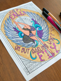 "What If You Fly" Eagle Pole Dancer Digital Coloring Page 8.5" x 11"